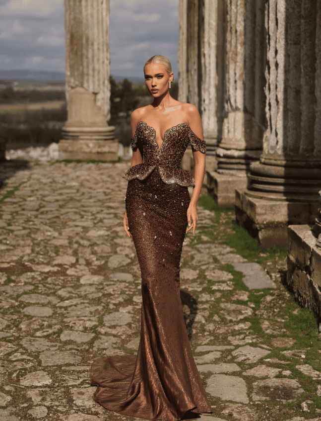 Celeste Éclat – Elegant Evening Dress is a vision of celestial beauty and timeless sophistication. Crafted from premium fabric with a soft, radiant sheen, this gown drapes gracefully, enhancing every movement with light and elegance. Delicate detailing and masterful tailoring bring a touch of starlit charm, making it the perfect choice for weddings, galas, receptions, and evening celebrations.