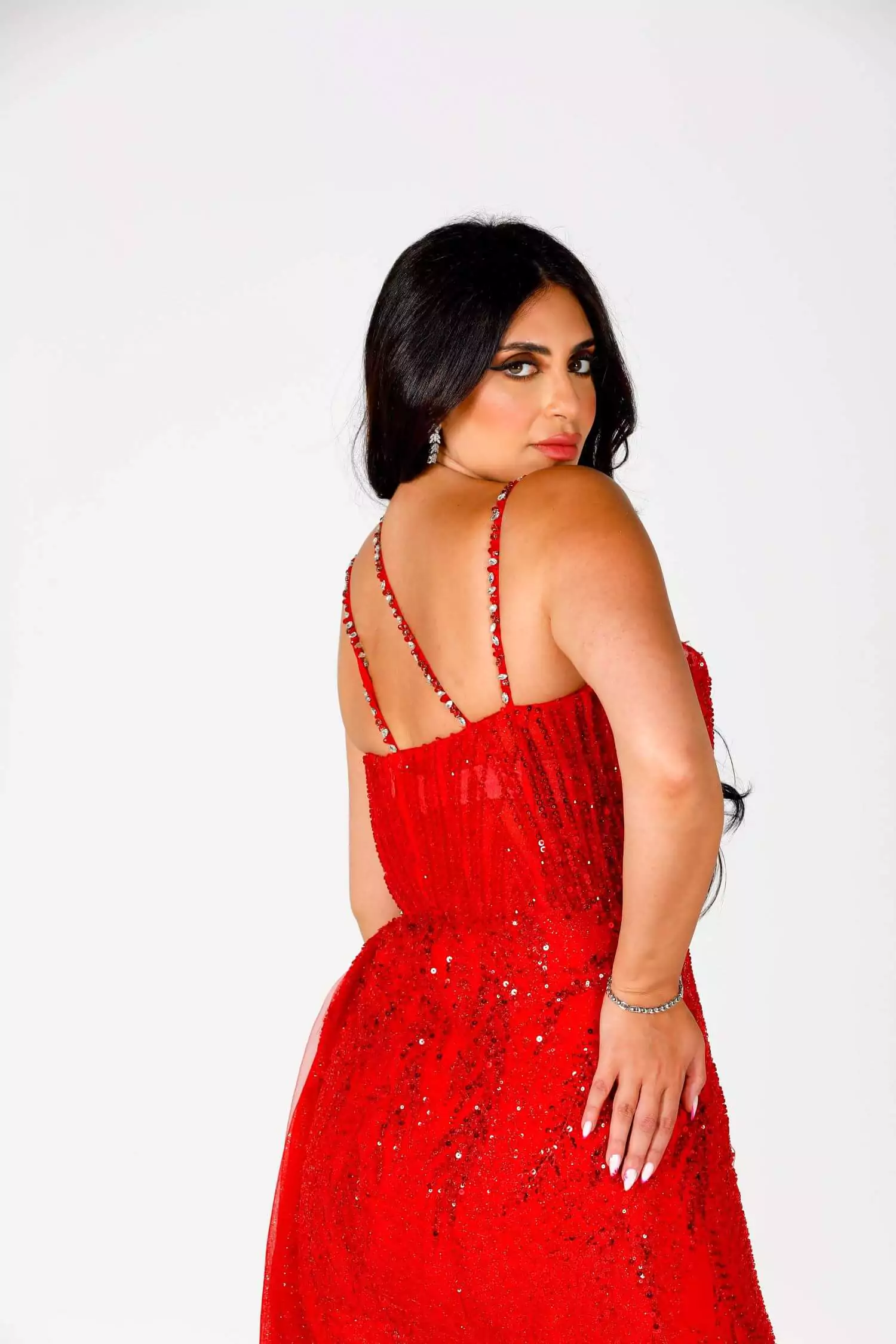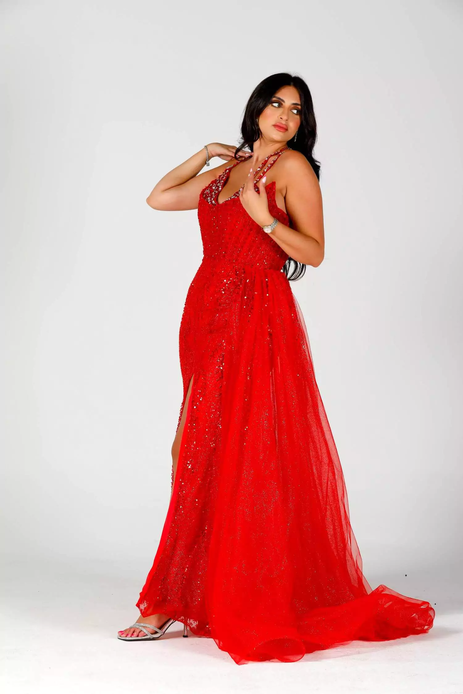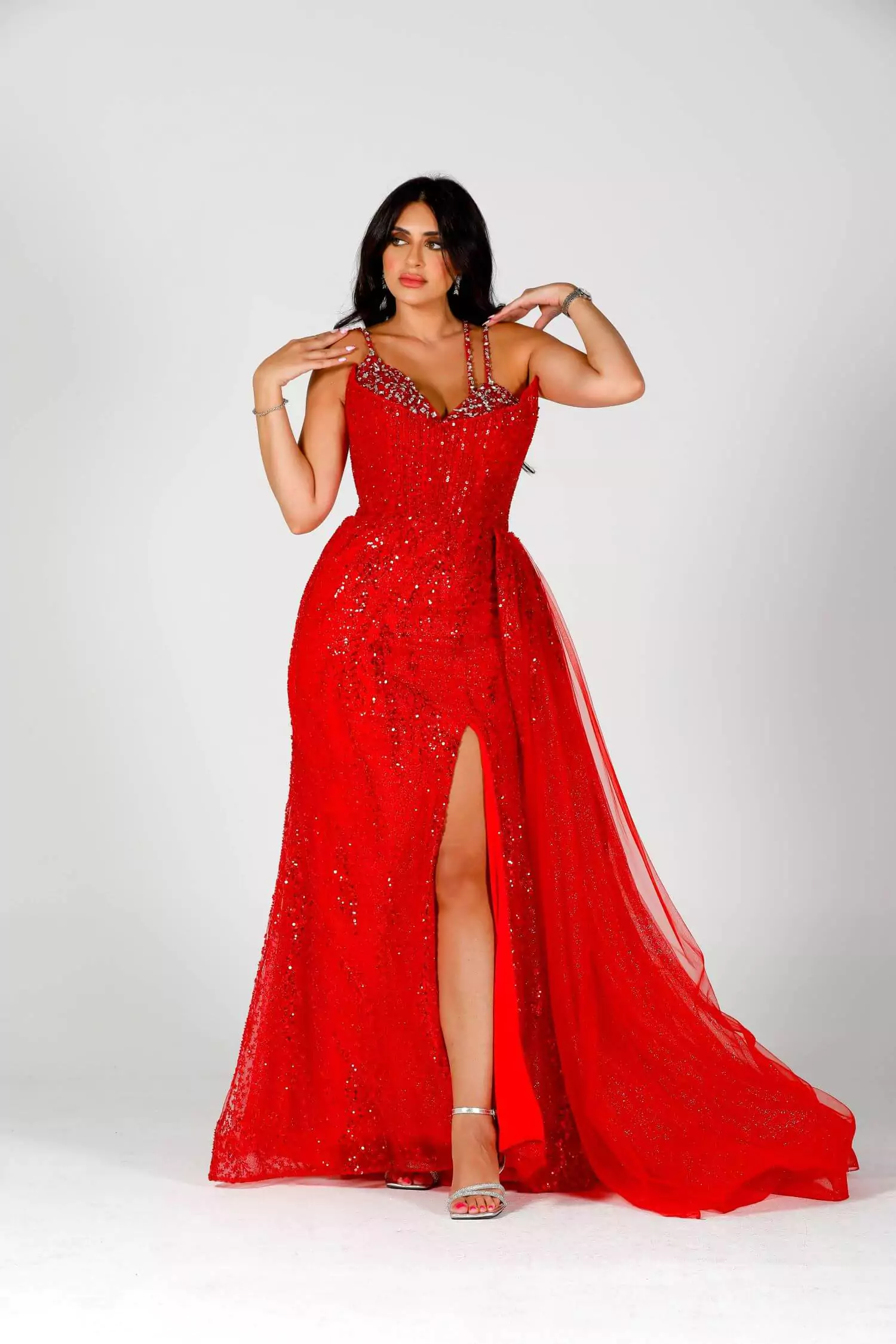 Turn every head and light up the room in Fervor, an evening dress that embodies passion, power, and allure. With its fiery red hue and dramatic silhouette, Fervor is designed for women who want to make an unforgettable entrance. Whether it’s a formal gala, wedding reception, or upscale soirée, this statement piece ensures you’ll be remembered long after the night ends. H3: Bold Design with Striking Elegance Crafted from premium satin, it offers a sleek, figure-enhancing fit with a plunging neckline and a sculpted waist. The gown features a high slit and sweeping train that flows with every step, combining elegance with just the right touch of daring. The backless design and structured shoulders bring balance to the look, giving it a modern edge while still preserving timeless glamor. It's not just a dress—it's a declaration of confidence and bold femininity. H3: Why Choose Fervor by Fostani One? Exclusive limited-edition design Rich, deep red color is perfect for evening affairs Crafted with couture-level detailing and premium fabric