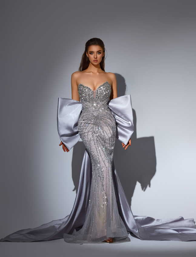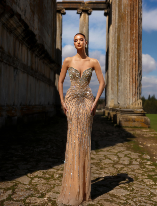 This gown combines timeless style with contemporary detailing, making it a versatile piece for any luxury wardrobe. Its flowing design captures movement beautifully, while its refined structure enhances confidence with every step. Ideal for evening soirées, formal gatherings, or red-carpet appearances, this gown transforms your presence into a statement of elegance.