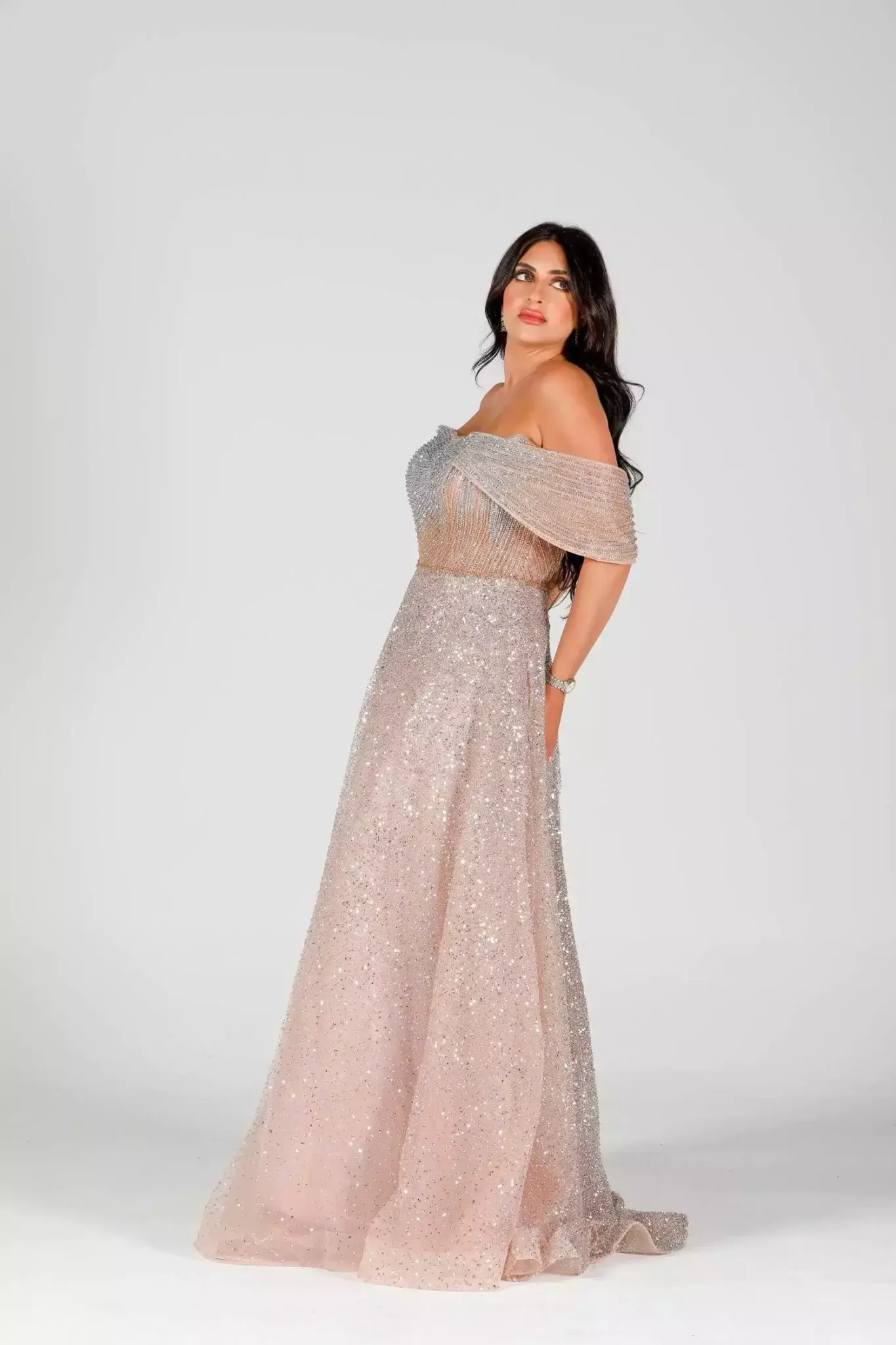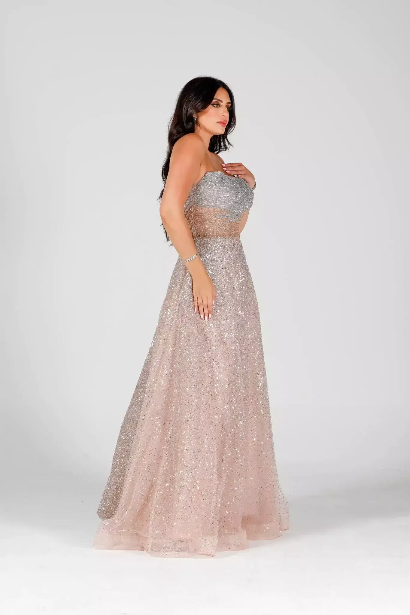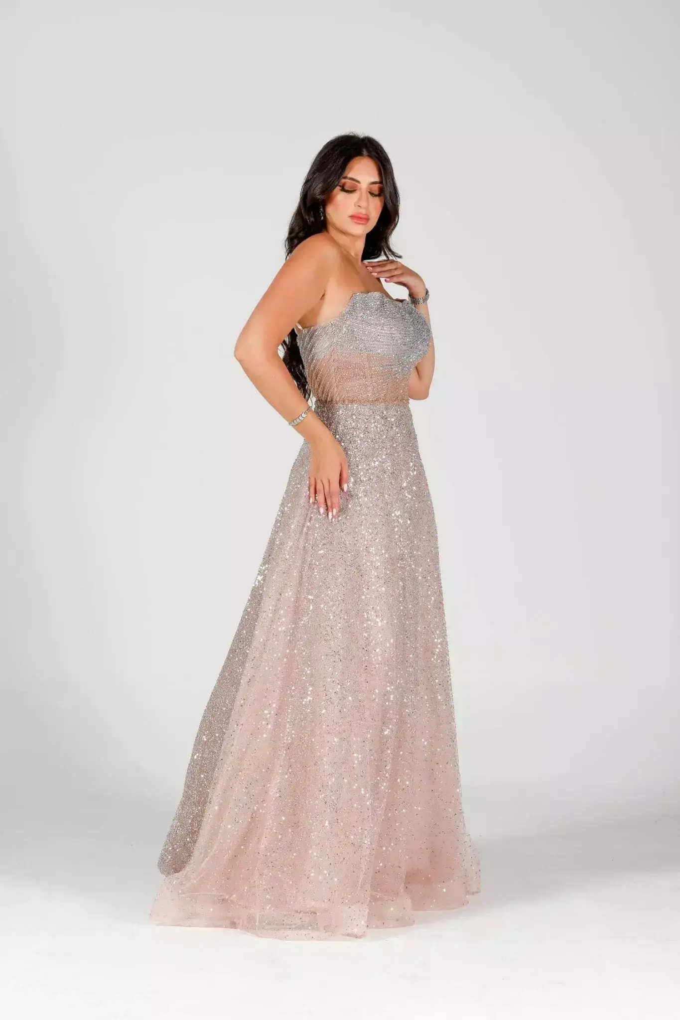 Step into pure sophistication with Magnifique, the ultimate expression of evening glamour. Designed for the modern woman who embraces elegance and confidence, this exquisite gown is tailored to make you feel truly unforgettable. Whether you're attending a gala, a red-carpet event, or an exclusive soirée, the bold charm of it guarantees a grand entrance. Luxurious Design Meets Flawless Detail Crafted from premium fabric with a delicate shimmer, it flows gracefully with every step. The silhouette hugs your curves in all the right places, while a dramatic train and intricate embellishments elevate the gown to couture status. From the rich color palette to the expertly sewn detailing, every inch of it speaks luxury. The deep V-neckline and elegant open back balance boldness and sophistication, allowing you to turn heads from every angle. Whether paired with statement heels or classic jewelry, this dress empowers you to shine with unmatched poise. Why Choose Magnifique by Fostani One? Exclusive design, only available at Fostani One Perfect for weddings, red carpet, and formal events Available in multiple sizes for a flawless fit