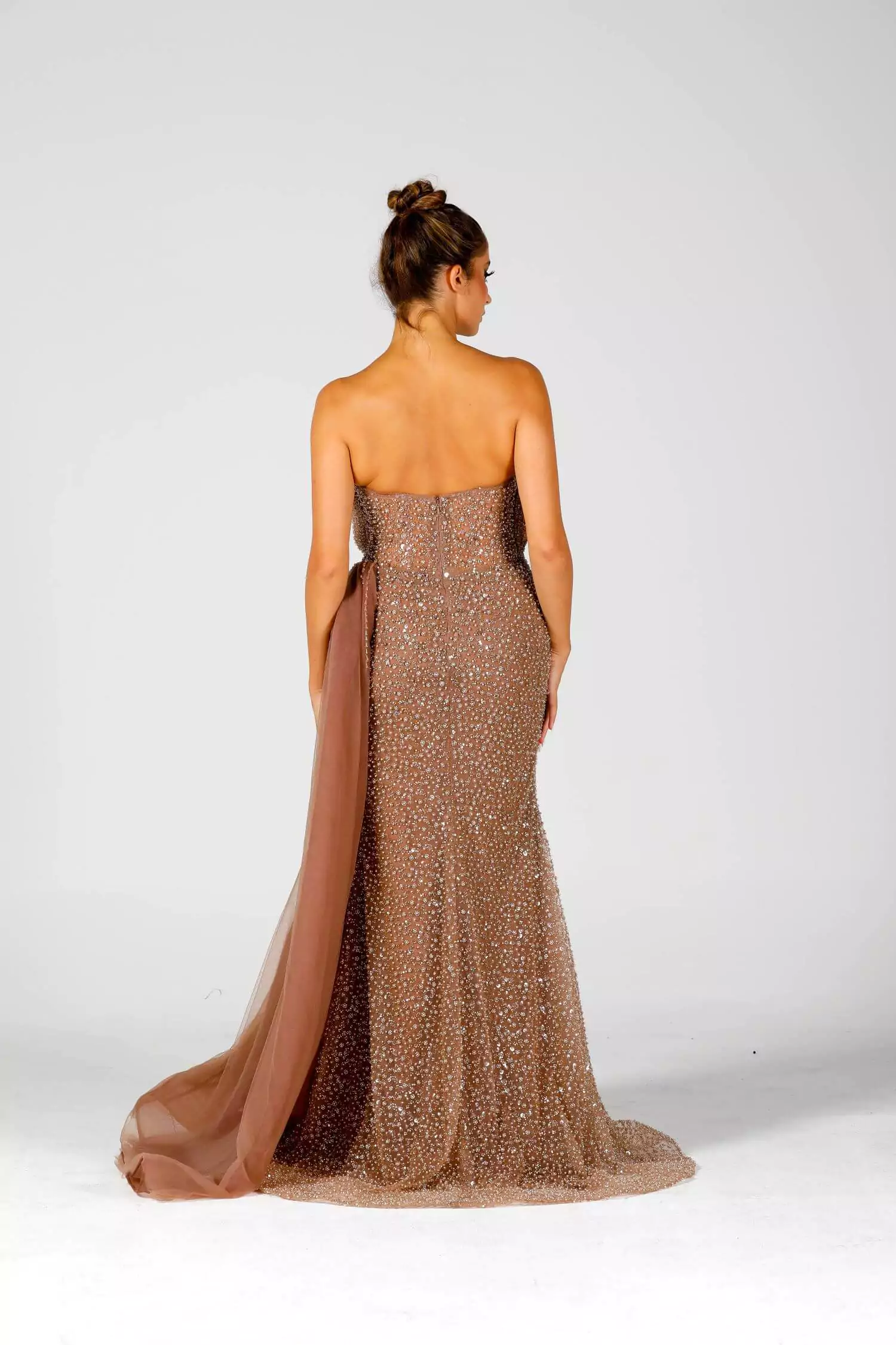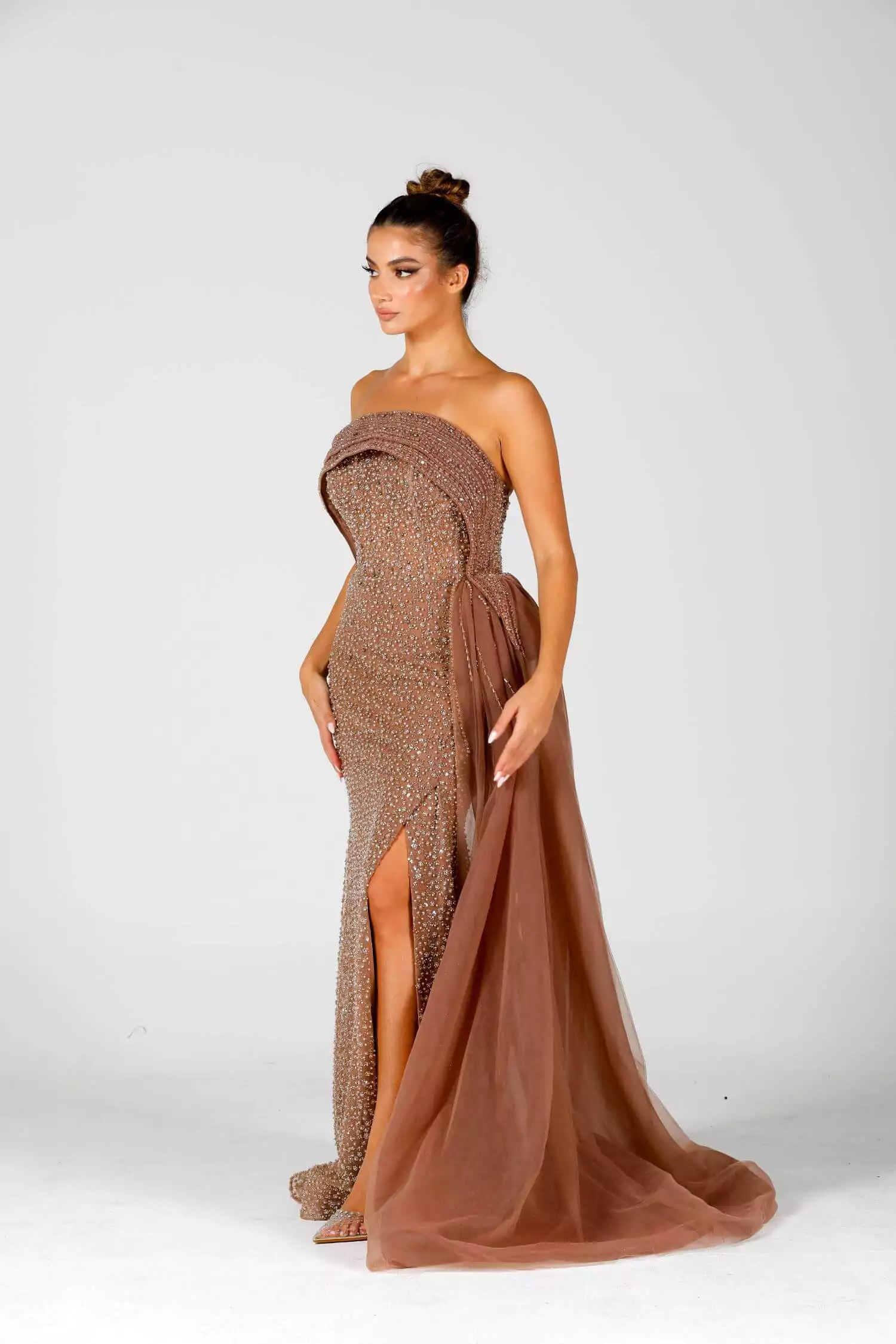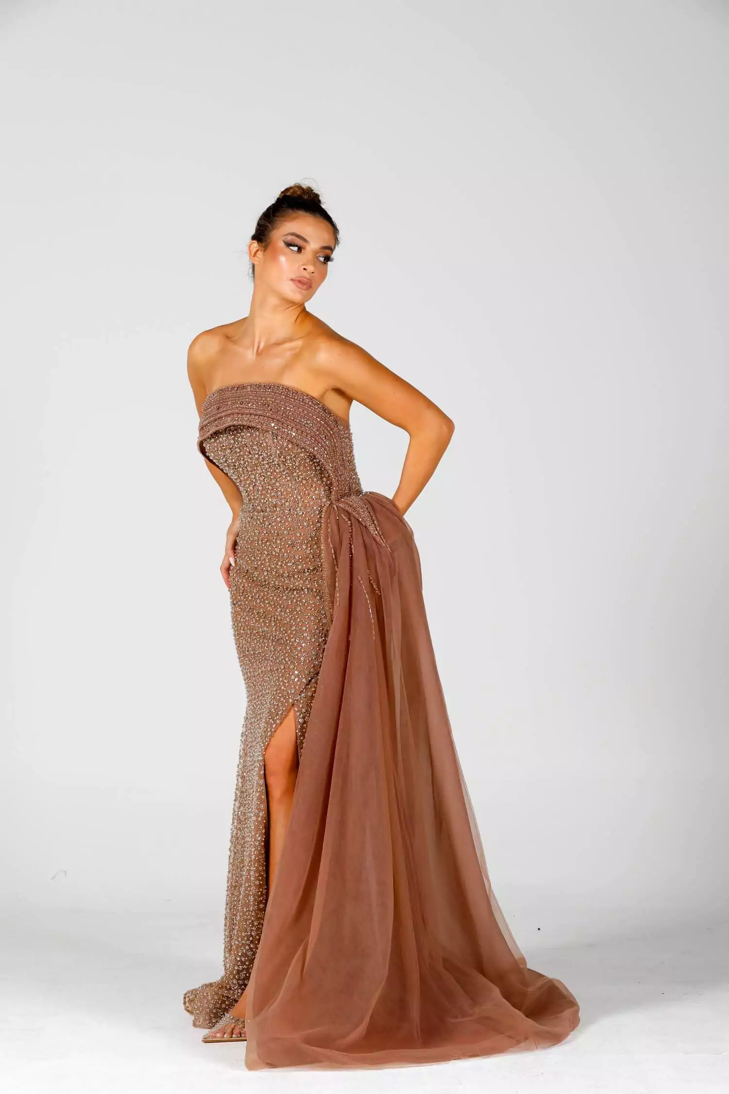 Command attention with the classic sophistication of Sable, a luxurious black evening gown crafted for modern elegance. Perfect for formal galas, black-tie affairs, and exclusive events, Sable combines graceful design with captivating details to create an effortlessly chic silhouette. H3: The Essence of Grace and Power This gown is made from premium stretch satin that flows like liquid silk. Its deep black hue radiates power and mystique, while the structured bodice and sleek mermaid cut accentuate the feminine form. A daring side slit and low open back add a hint of drama, allowing you to make a bold yet tasteful statement. Every detail—from the refined neckline to the invisible zipper—has been carefully constructed to ensure a perfect fit and finish. The dress moves with you, offering both comfort and confidence as you glide through the evening. H3: Why Choose Sable from Fostani One? Exclusive design tailored for elegant affairs High-quality fabric with luxurious drape Perfect for formal dinners, galas, or luxury occasions